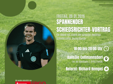 Am Freitag, dem 9. Januar 2026, lädt der Kreisverband Fußball Sächsische Schweiz-Osterzgebirge (KVFSOE) zu einem besonderen Vortrag ein: DFB-Schiedsrichter Richard…