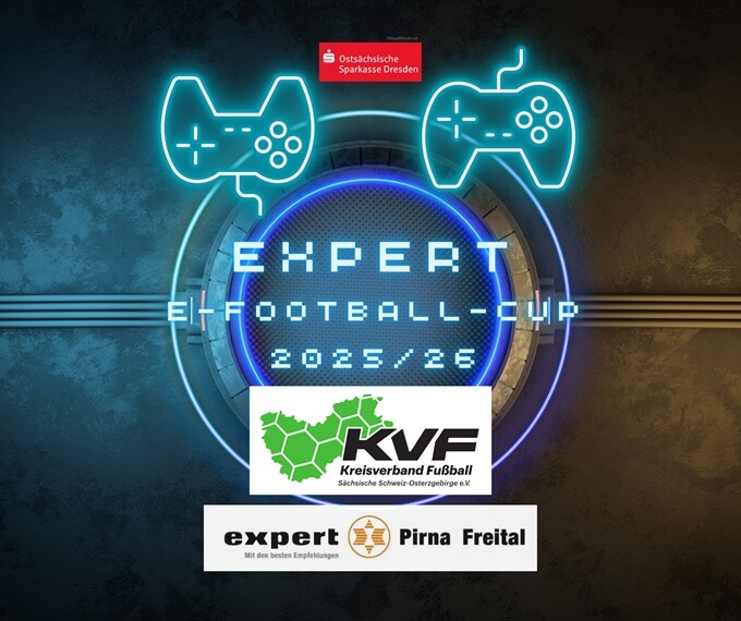 Bereits zum fünften Mal lädt der Kreisverband Fußball Sächsische Schweiz-Osterzgebirge (KVF SOE) gemeinsam mit Kreissportbundpartner EXPERT zum beliebten EXPERT eFootball-Cup ein. In diesem Jahr darf sich das Turnier über einen neuen starken Partner freuen: Erstmals unterstützt die Ostsächsische Sparkasse Dresden den Wettbewerb als offizieller Präsentationspartner.