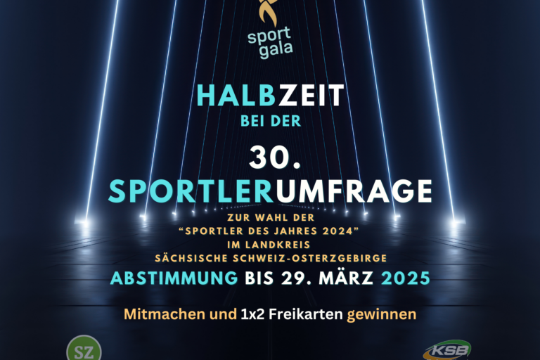 Bei der 30. Sportlerumfrage von Kreissportbund und Sächsischer Zeitung ist jetzt Halbzeit! Ihr könnt mit Euren Stimmen noch bis 29. März 2025 mitentscheiden, wer Sportlerin, Sportler und Mannschaft des Jahres…