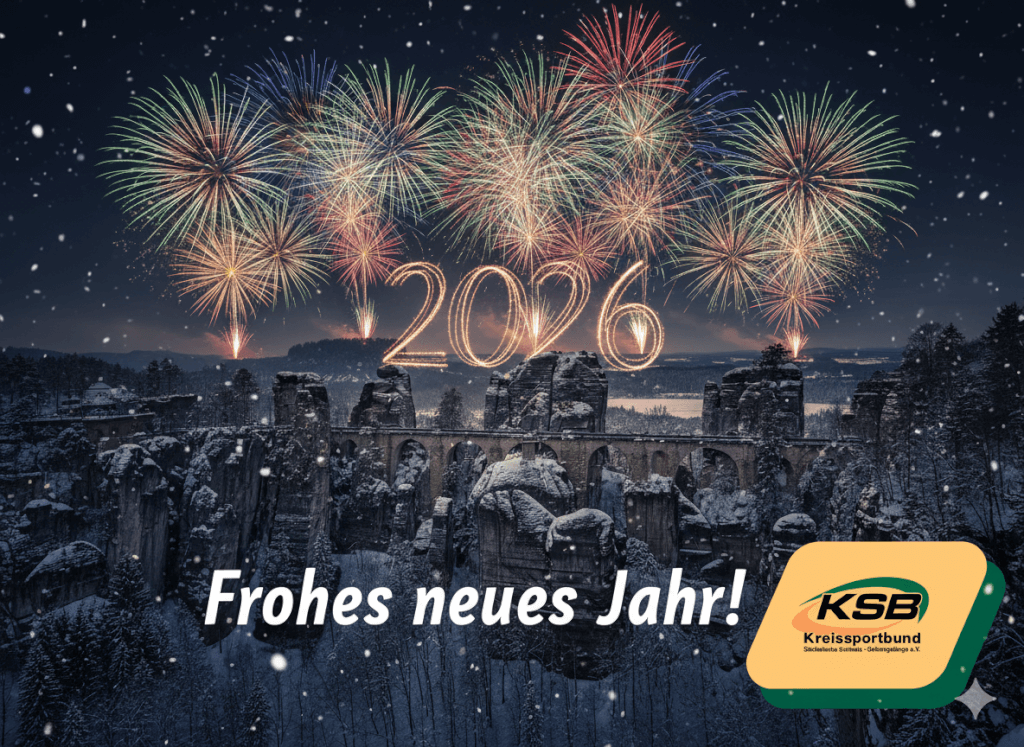 Neues Jahr, neues Glück und möglichst viele Erfolge: Der Kreissportbund wünscht allen Mitgliedsvereinen und -fachverbänden, seinen Sponsoren und Unterstützern sowie den zahlreichen Sportfreundinnen und Sportfreunden im Landkreis ein gesundes, neues Jahr 2026! Wir sind auch in diesem Jahr mit Rat und Tat für Euch da!