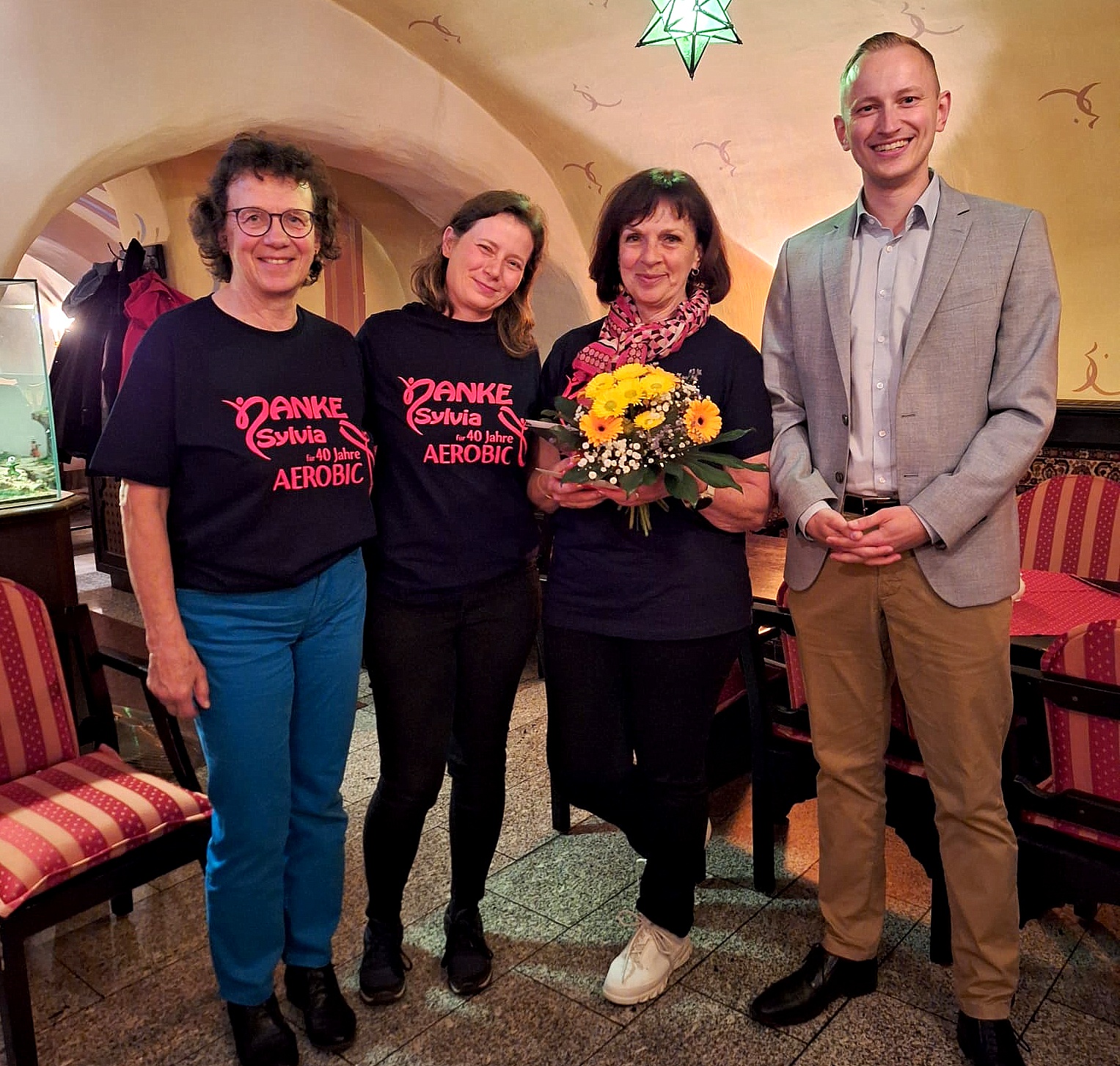 Besondere Ehrung zum runden Jubiläum: Die Abteilung Aerobic des Sportvereins Hermsdorf feiert 40-jähriges Bestehen. Ins Leben gerufen wurde die Sparte 1985 von Sylvia Renner. Die langjährige Übungsleiterin übergibt jetzt den Staffelstab „und will sich künftig nicht mehr vor, sondern lieber in die Gruppe stellen“. Aus diesem Anlass wurde die 62-jährige aus Hermsdorf/Erzgebirge am vorigen Freitagabend mit der Ehrennadel des LSB in Silber ausgezeichnet. Kreissportbund-Präsident Julian Schiebe übernahm die Ehrung bei der Jubiläumsfeier in Dresden.