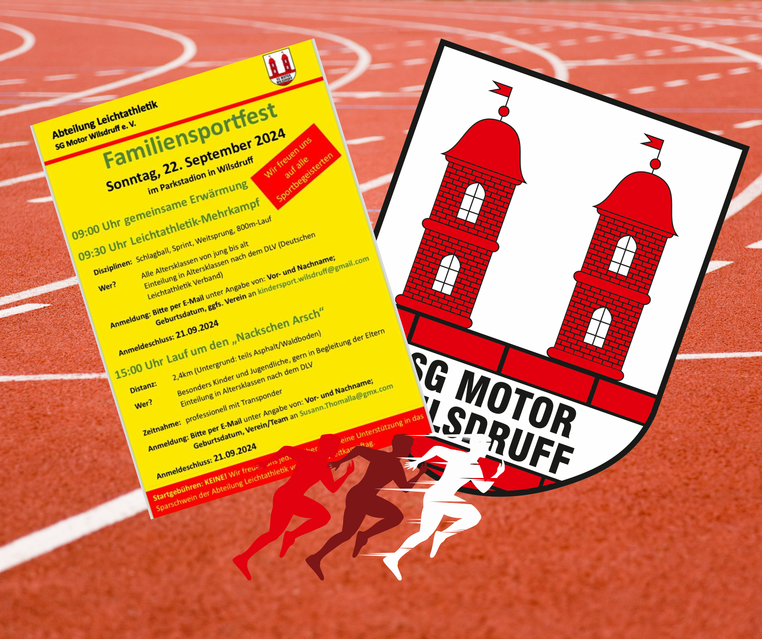Die Leichtathleten der SG Motor Wilsdruff laden am 22. September 2024 zu ihrem diesjährigen Abteilungssportfest für Jung und Alt ins Parkstadion am Landbergweg 7a in Wilsdruff ein. Um 9 Uhr wird der Aktionstag mit einer gemeinsamen Erwärmung aller Teilnehmerinnen und Teilnehmer eröffnet. Danach gibt es einen Leichtathletikmehrkampf in Schlagball, 900-Meter-Lauf, Weitsprung und Sprint Anmeldungen mit Infos zu Name, Alter, ggf. Verein und Wunschdisziplin bitte bis spätestens 21. September per E-Mail an: kindersport.wilsdruff@gmail.com.