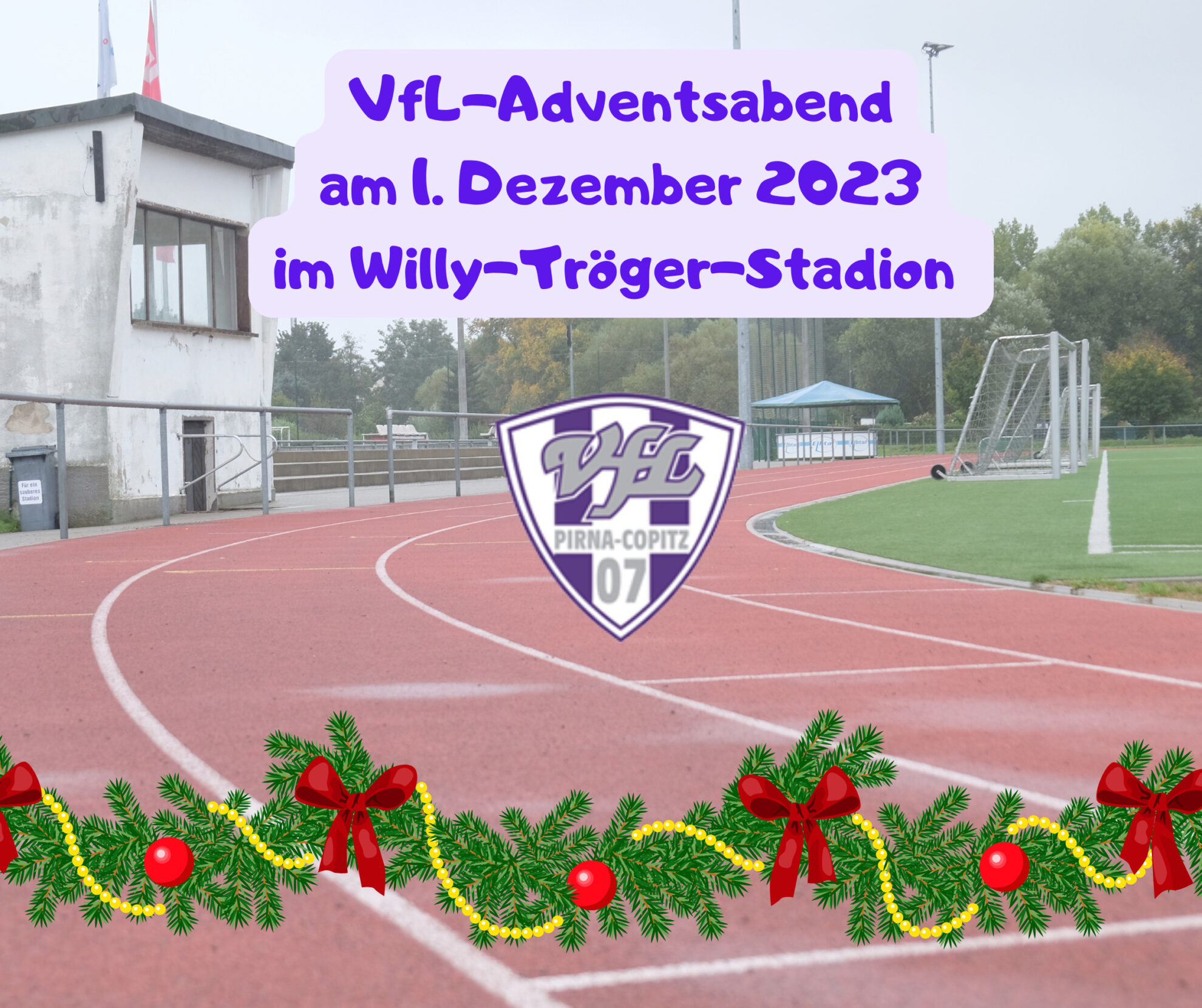 Es wird weihnachtlich im Willy-Tröger-Stadion: Der VfL Pirna-Copitz lädt am Freitag, dem 1. Dezember 2023, Kinder und Familien, Mitglieder sowie Anwohnerinnen und Anwohner herzlich zum gemeinsamen VfL-Adventsabend ein. Ab 17 Uhr werden im Copitzer Willy-Tröger-Stadion an der Birkwitzer Straße viele Überraschungen geboten – für Groß und Klein, für Alt und Jung. Der Eintritt ist frei.