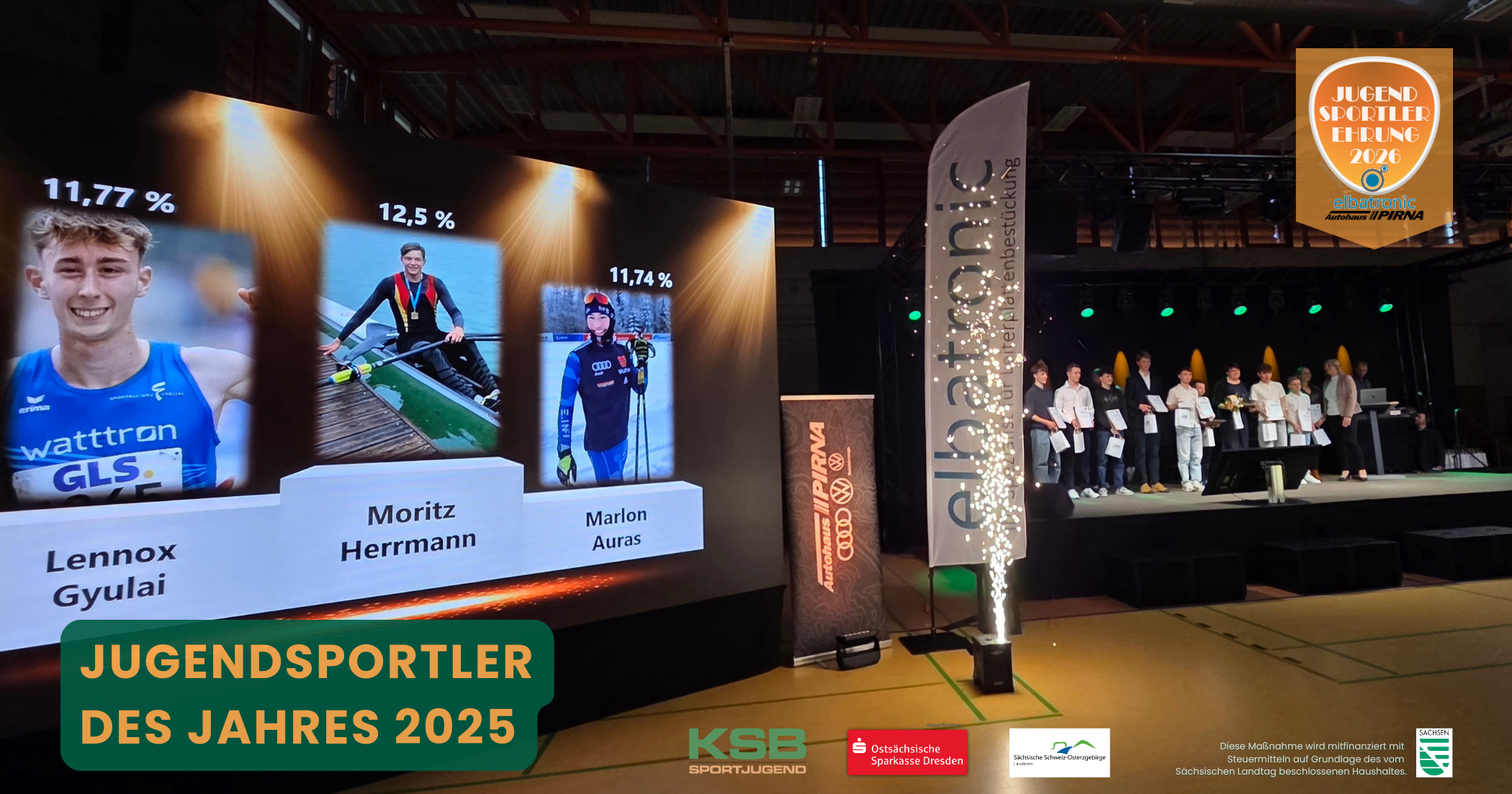 Der 16-Jährige hatte 2025 den Platz drei bei der Deutschen Jahrgangsmeisterschaft und Silber beim Internationalen Baltic Cup errungen und darf sich nun Jugendsportler des Jahres nennen. Herrmann gewann vor dem am Stützpunkt vom Dresdner SC 1898 trainierenden Leichtathleten und zweifachen Deutschen Nachwuchsmeister Lennox Gyulai von der SG Lokomotive Hainsberg aus Freital. Den Bronzeplatz schnappte sich Biathlet Marlon Auras vom SV Grün-Weiß Pirna.