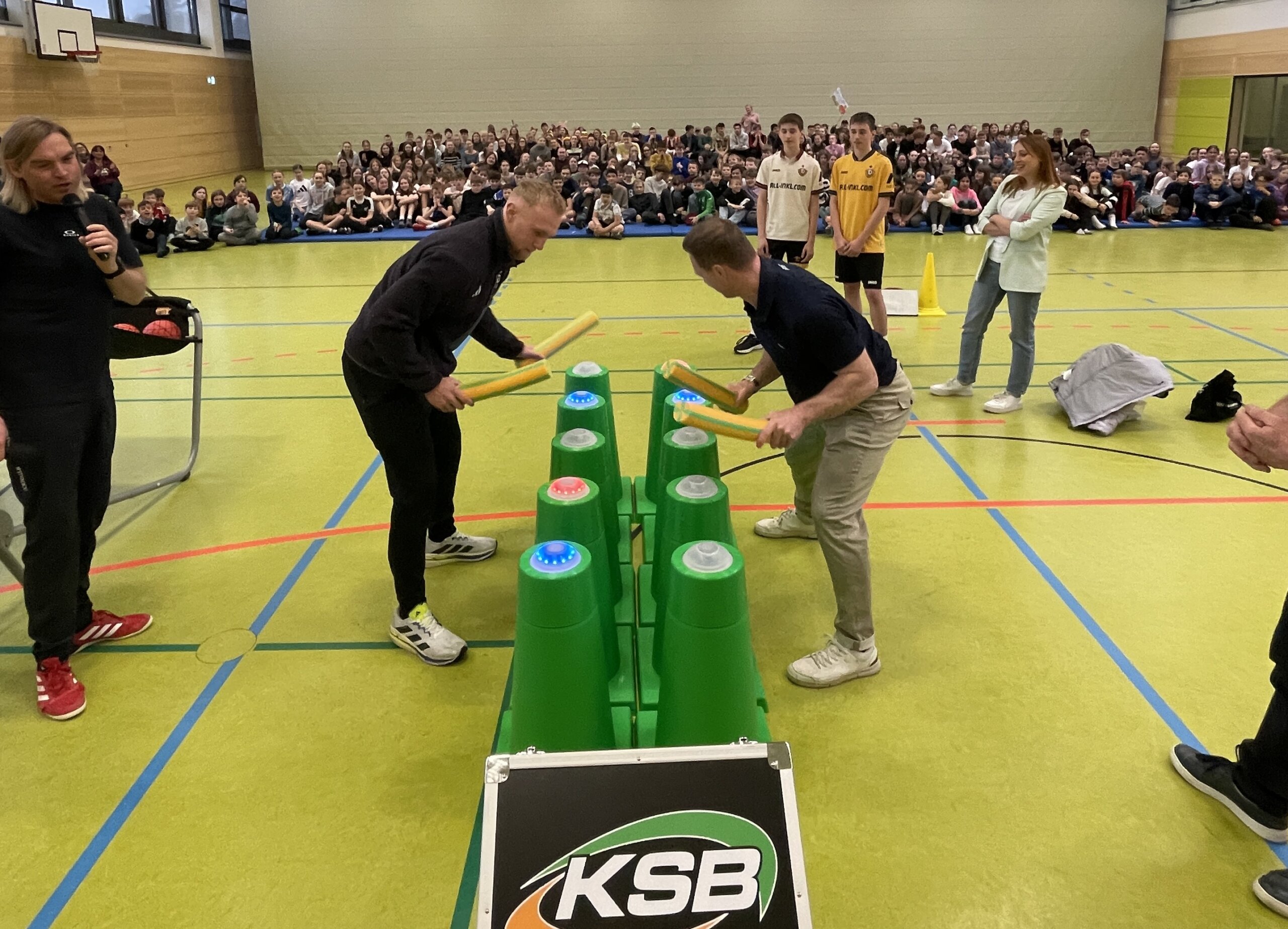Die beiden erfolgreichen Bobsportler aus dem Altenberger Ortsteil Hirschsprung und aus Pirna absolvierten gemeinsam mit zahlreichen Schülern mehrere Sportspiele mit Spaßfaktor. Im Beisein mit Gästen wie KSB-Geschäftsführer Paul Leiteritz sowie Schulleiter und KSB-Vizepräsident und Schulleiter Volker Hegewald sprachen die Olympioniken von ihren Erfolgen, zeigten ihre Medaillen und gaben Autogramme. Beide Spitzenathleten waren einst Schüler des Sportgymnasiums in Altenberg und machten dort ihre Abitur.