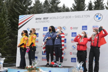 Beim Zweierbobwettkampf der Frauen verpasste die Weltcup-Gesamtführende Laura Nolte (BSC Winterberg) den dritten Sieg im dritten Weltcuprennen nur knapp. Mit vier Hundertstelsekunden Rückstand kam die Halbzeitführende zusammen mit Anschieberin Deborah Levi vom SC Potsdam am Ende mit der zweitbesten Zeit hinter Weltmeisterin Kaillie Humphries und Anschieberin Kaysha Love aus den USA ins Ziel. Platz drei erkämpfte sich das kanadische Team von Christine de Bruin.