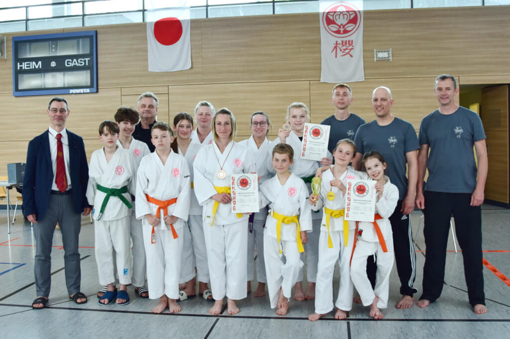 Unter der Leitung von Akio Nagai Shihan 9. Dan, dem Bundestrainer SKID, fand vor Kurzem das diesjährige Internationale Kyu-Turnier und der Nagai Cup in Neuburg statt. Mehr als 170 Starter aus Deutschland, Österreich, Schweiz, Italien, Belgien, Polen, Tschechien, Ungarn und Slowenien starteten in verschiedenen Kategorien um die begehrten Medaillen für die besten Karatekas. Das Team vom KSB-Mitgliedsverein Karate Dojo Sakura Pirna war mit 14 Karatekas am Start und holte drei Medaillen. Martha Scholz (AK 8-11 Jahre gemischt/8.-7. Kyu) sicherte sich Gold. Johanna Schäfer (Mädchen AK 12-15/8.- 6 Kyu) und Julia Menge (Damen ab 16 Jahre/8.-6. Kyu) errangen jeweils Bronze.