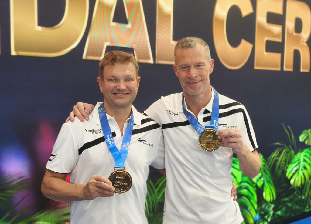 Erfolgreich in Fernost: Wasserspringer Erik Seibt aus Pirna hat vor Kurzem bei den Masters-Weltmeisterschaften in Singapur vier Goldmedaillen geholt. Damit konnte der 53-Jährige vom Dresdner SC trotz Rückenbeschwerden genauso viele Titel erringen wie bei den vergangenen WM im Februar 2024 in Doha in Katar. Mit Dorit Ehren konnte zudem noch ein weiteres Sprung-Ass aus Pirna Edelmetall holen. In der AK 45-49 erkämpfte sich die an der Schulter lädierte DSC-Sportlerin zweimal Bronze (Synchron-Turm und Einzel).