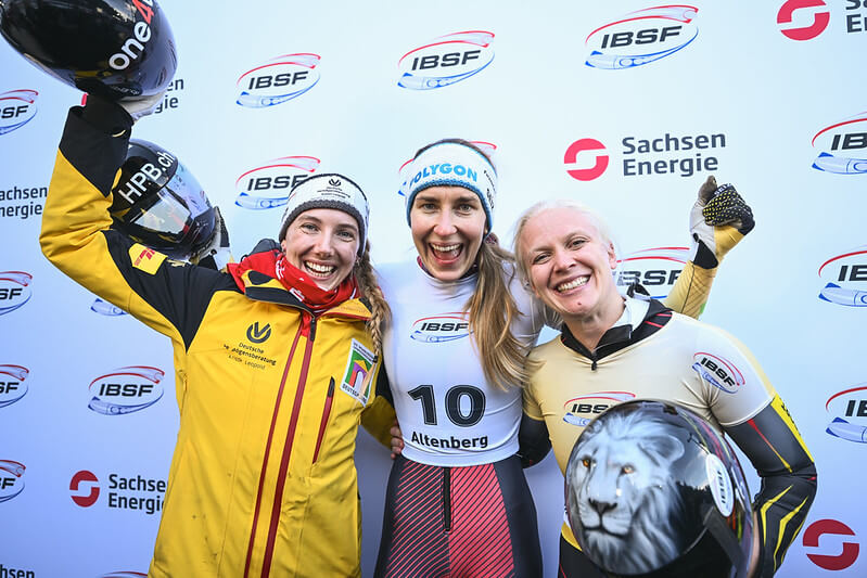 Der Titel beim Einzelrennen der Frauen am Freitagmittag in Altenberg ging an ihre Verbandskollegin Jacqueline Pfeifer von der RSG Hochsauerland, die neben Olympiasiegerin Hannah Neise (BSC Winterberg) ebenfalls für Schwarz-Rot-Gold an den Start geht. Bronze in der Bobbahn Altenberg schnappte sich Kim Meylemans aus Belgien vor der niederländischen Weltmeisterin Kimberley Bos. Die Belgierin sicherte sich für ihr Land und für sich den ersten Gesamtsieg im Weltcup. Pfeifer wurde Gesamtzweite. Susanne Kreher schaffte erstmals den Sprung in die Top-8. Sie wurde Gesamt-Sechste.